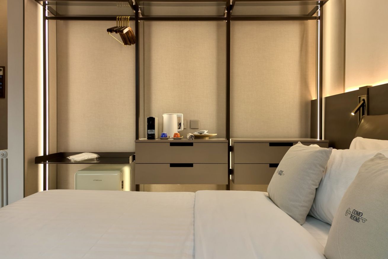 Ogni camera dispone inoltre di Wi-Fi veloce, smart TV, climatizzazione autonoma, macchina del caffè e bollitore con selezione di cialde e tè.