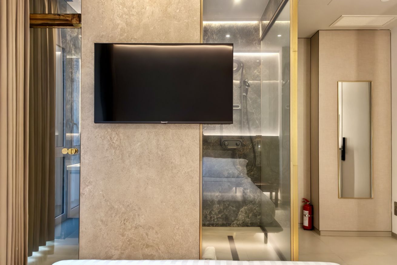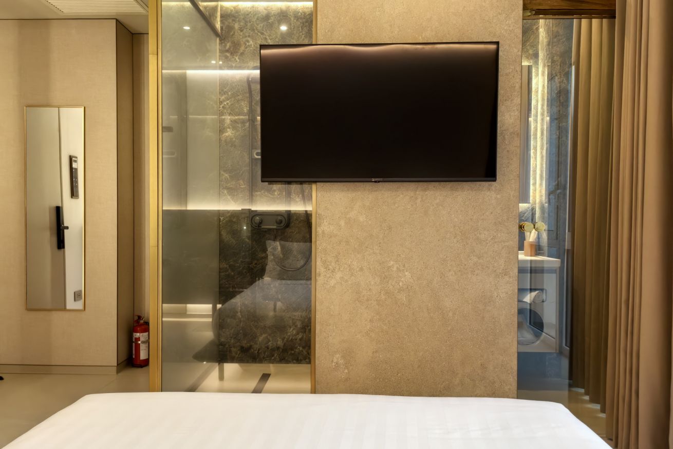 I bagni privati sono dotati di comfort e tecnologie avanzate: spaziose docce in cristallo con vetri intelligenti a privacy regolabile, WC elettronici di ultima generazione con funzioni automatiche e sistemi di igiene integrata, oltre a scaldasalviette di design per asciugamani sempre caldi. L’acqua è regolabile con precisione per offrire un’esperienza personalizzata. Completano l’ambiente un asciugacapelli e un set di cortesia.