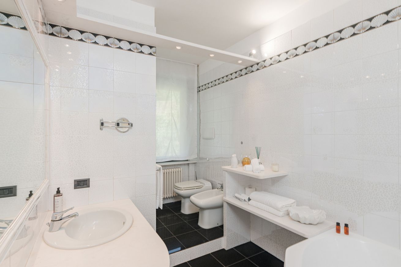 The interiors are bright and spacious, tastefully furnished and equipped with everything needed for a pleasant stay. The villa also provides private on-site parking, ensuring comfort and safety.
