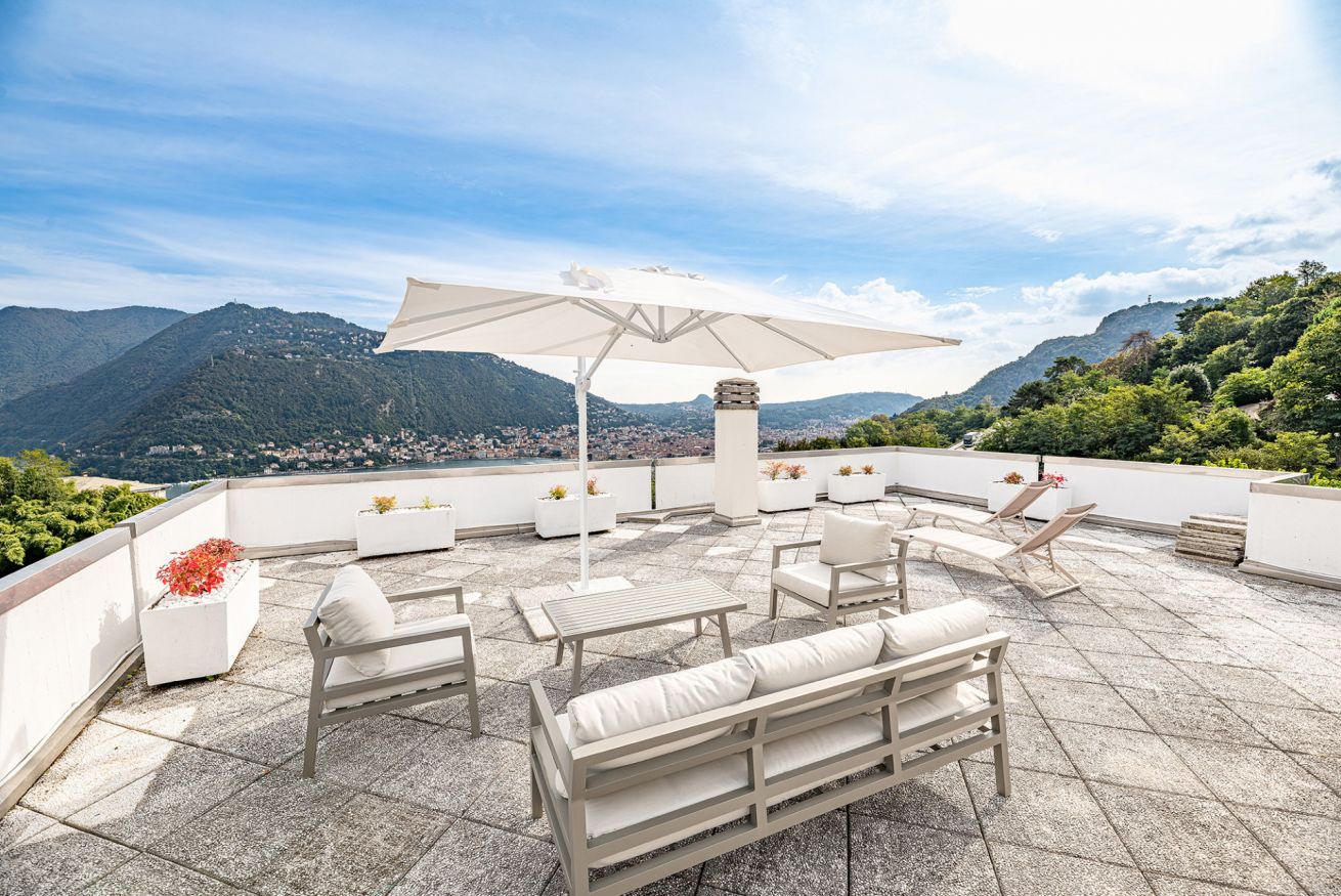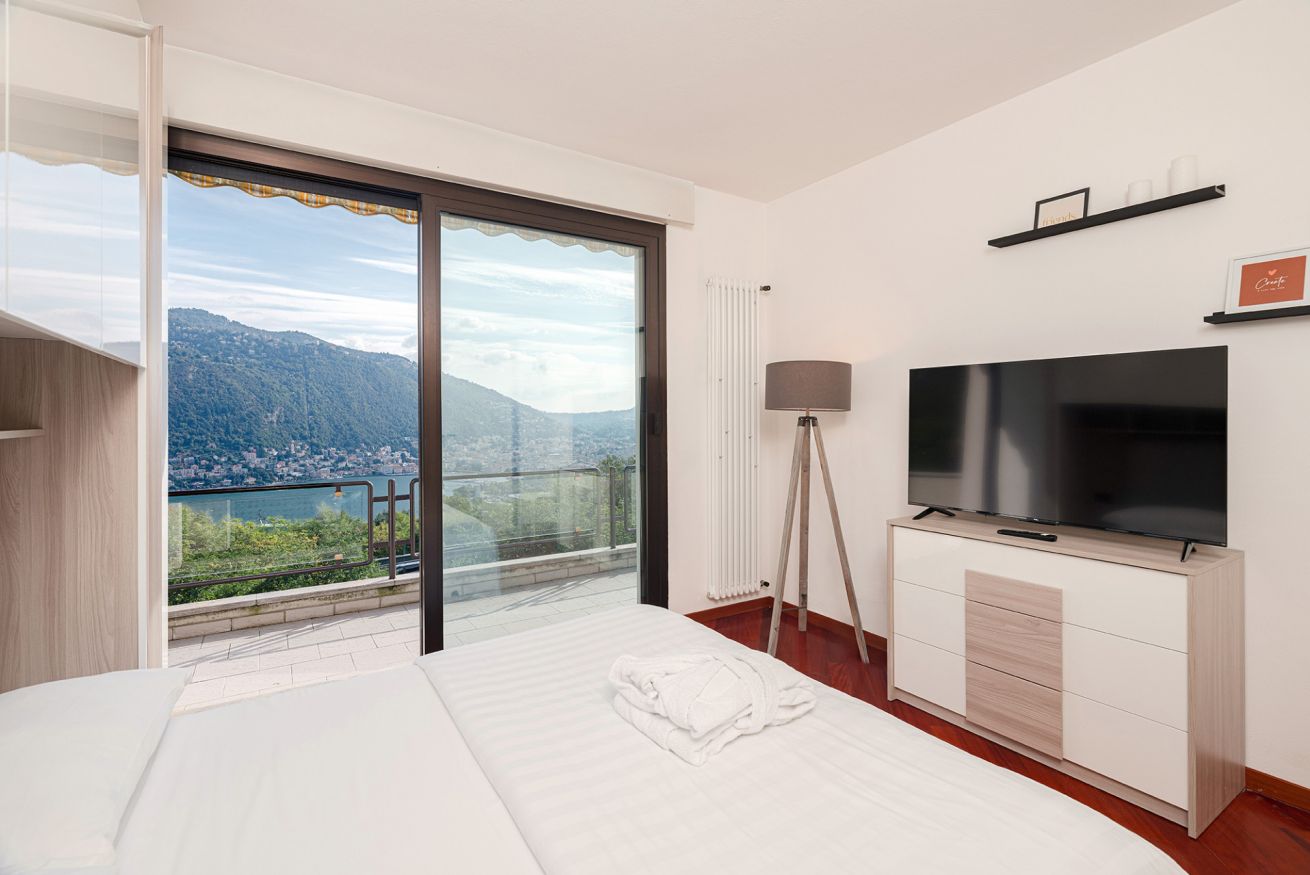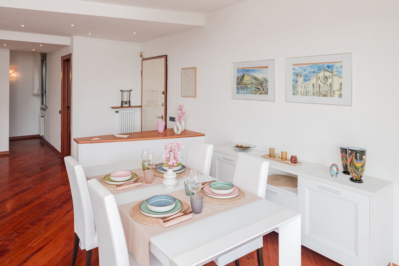 The property features a well-kept private garden, ideal for relaxing outdoors or enjoying meals thanks to the fully equipped barbecue area. On the top floor, guests can enjoy a large panoramic terrace with a stunning lake view, perfect for unforgettable sunsets or breakfast in the open air.