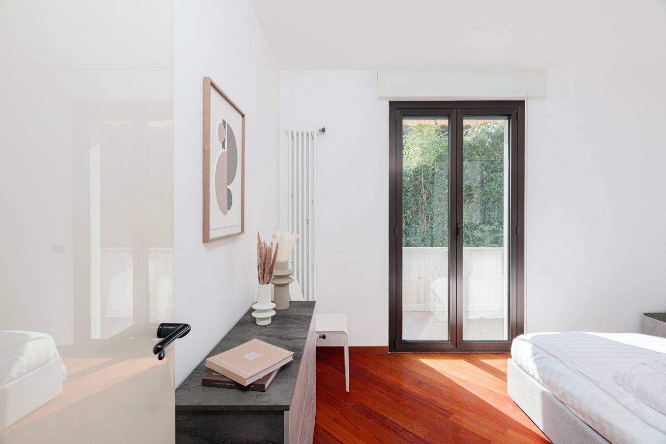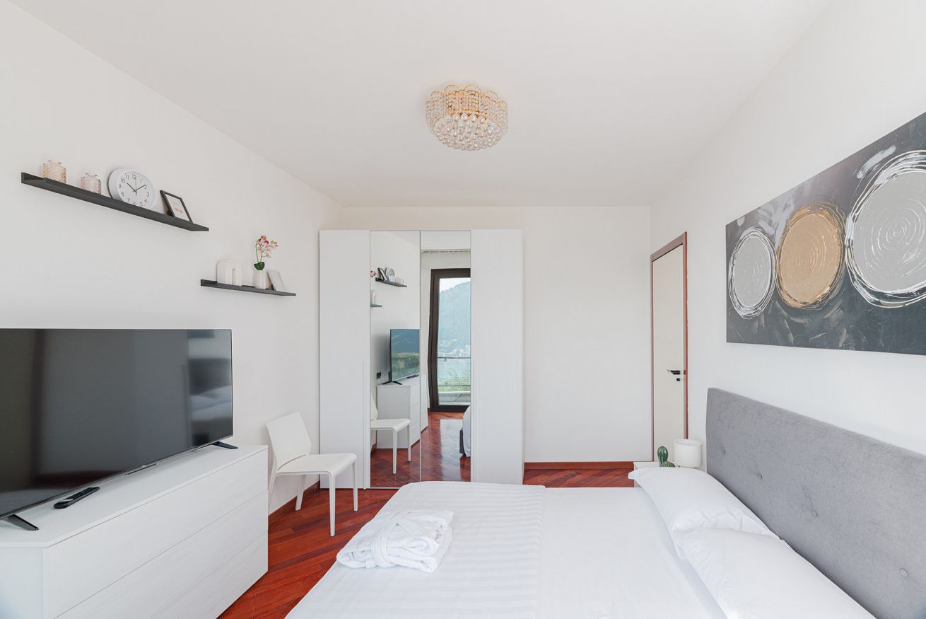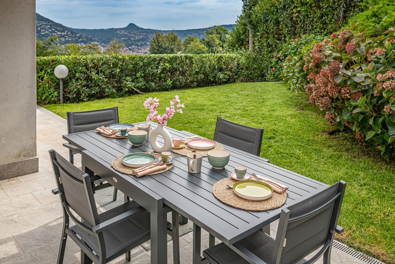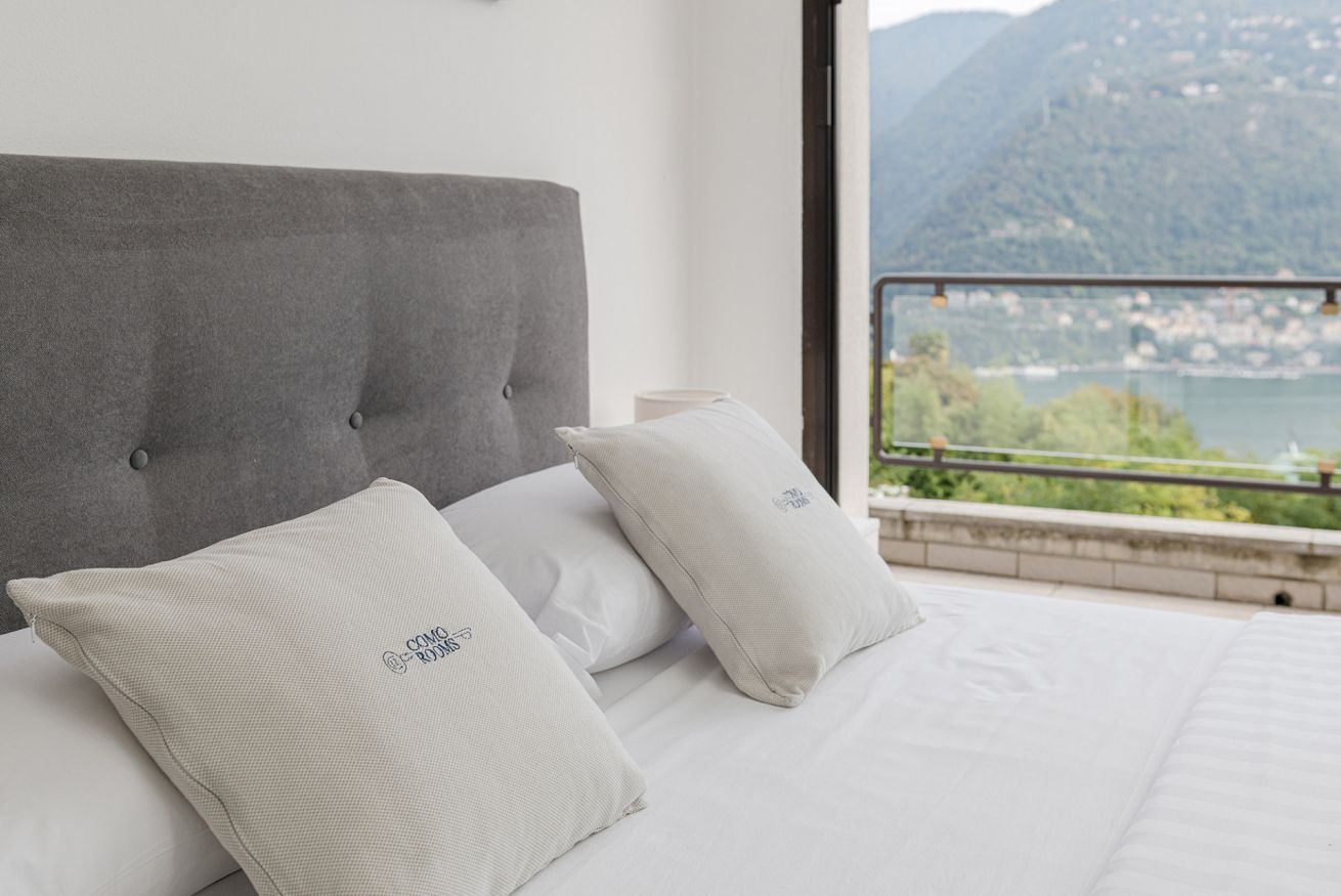 The property features a well-kept private garden, ideal for relaxing outdoors or enjoying meals thanks to the fully equipped barbecue area. On the top floor, guests can enjoy a large panoramic terrace with a stunning lake view, perfect for unforgettable sunsets or breakfast in the open air.
